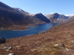 The view from The Saddle was mesmerising. The waters of Loch A’an were azure, Beinn Mheadhoin looked magnificent and a blanket of snow still lay across the Cairngorms pleateau.