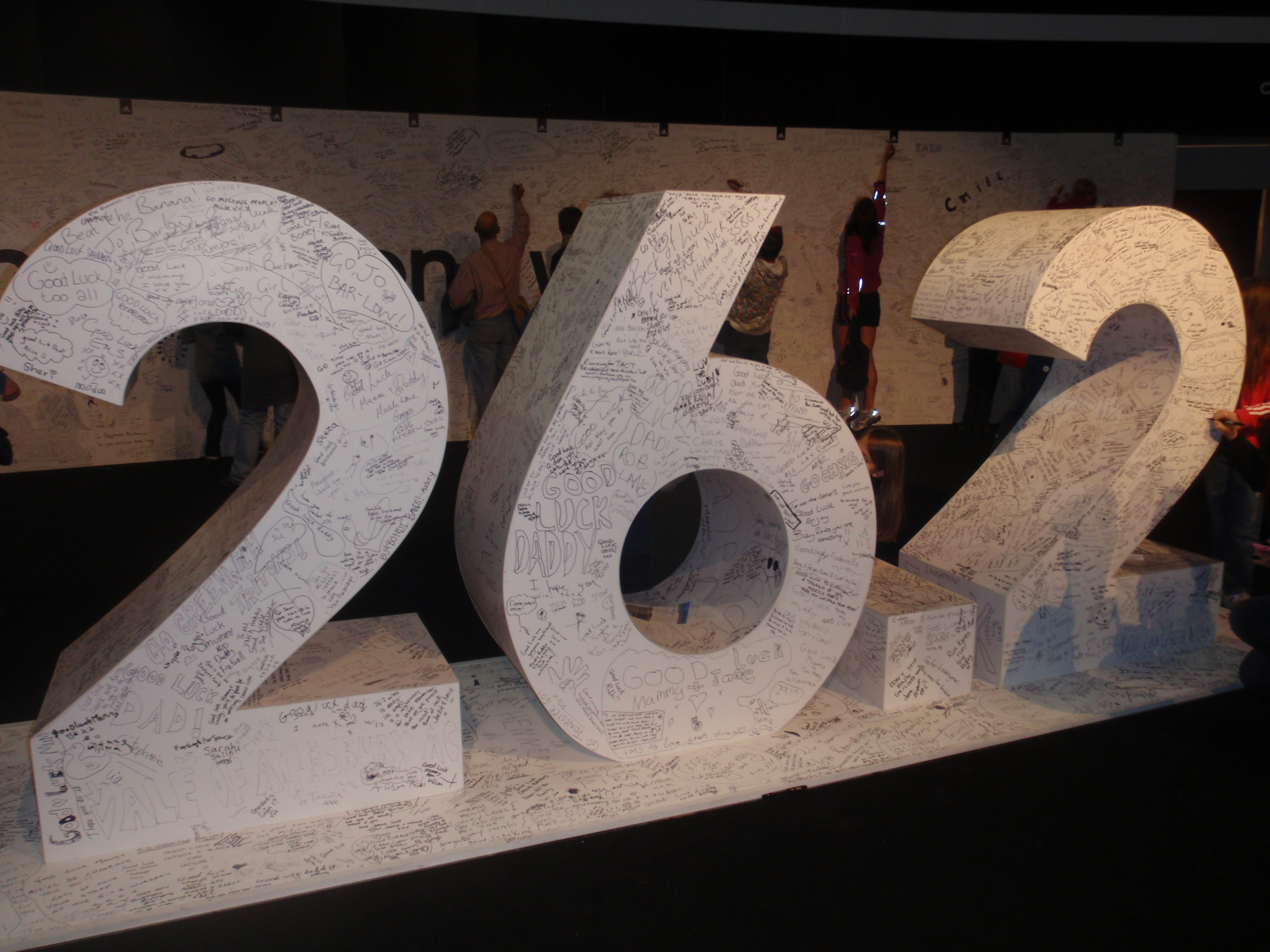 The exhibition at the ExCel is, unfortunately, a corporate jungle. Virgin branding is everywhere. Same story as regards Adidas. And what happened to all the freebies? I’m sure there used to be more stash flying about at registration in previous years. A goody bag containing a Mars Bar (useful) and a can of London Pride (not) was all runners got this year. Another victim of the economic downturn, perhaps?
