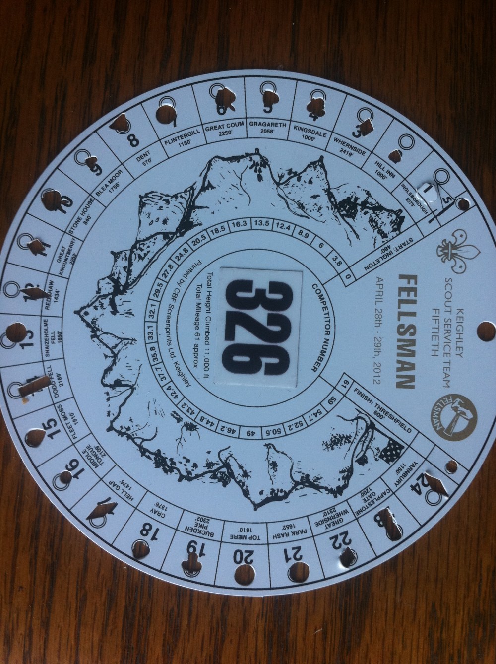 I needed two things: one, something to remind me that I am capable of getting round the Bob Graham, a reminder of the old invincibility, and, two, to be able to enjoy the simple sensation of running – as close to pain-free as possible – again. Salvation came today in the form of a communication from the Fellsman organisers. An envelope containing a certificate reminding me of my time didn’t matter. Nor did a second certificate reminding me that as a member of the Iced Spiced Collective we had won the team prize, The Service Trophy. No, what captivated me was the round plastic disc (pictured above) that I wore round my neck throughout and brought out for checkpoint staff at 26 different places to punch. The enormity of that day came flooding back; this disc symbolising the struggle of those hours. The symbol that I ran 61 miles in 13 hours, that I climbed 11,000ft, that I crossed mountaintop after mountaintop, that I never succumbed to exhaustion, that I survived numerous niggles, injury scares, aches and pains, that when I reached the road at the 59-mile mark I had an extraordinary second wind. I could feel a little of the old invincibility returning.