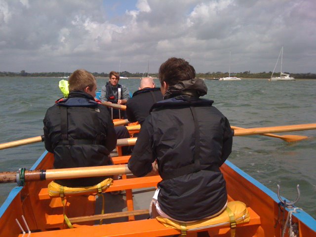 After introductions, a health and safety briefing, land-based stretching and careful negotiation of the harbour, we were in the open water of the Hayling Island estuary, ready to row, a keen southwesterly tugging on our oars. Mike had put me in the ‘stroke’ position at the front (or is the back?) with my responsibility being to set the pace. I went off like a train, a train that accelerated, decelerated, missed strokes and, on occasions, slapped aimlessly at the water. I wasn’t a natural. Mike needed a metronome; he got the opposite: an erratic, hurried, unpredictable novice.