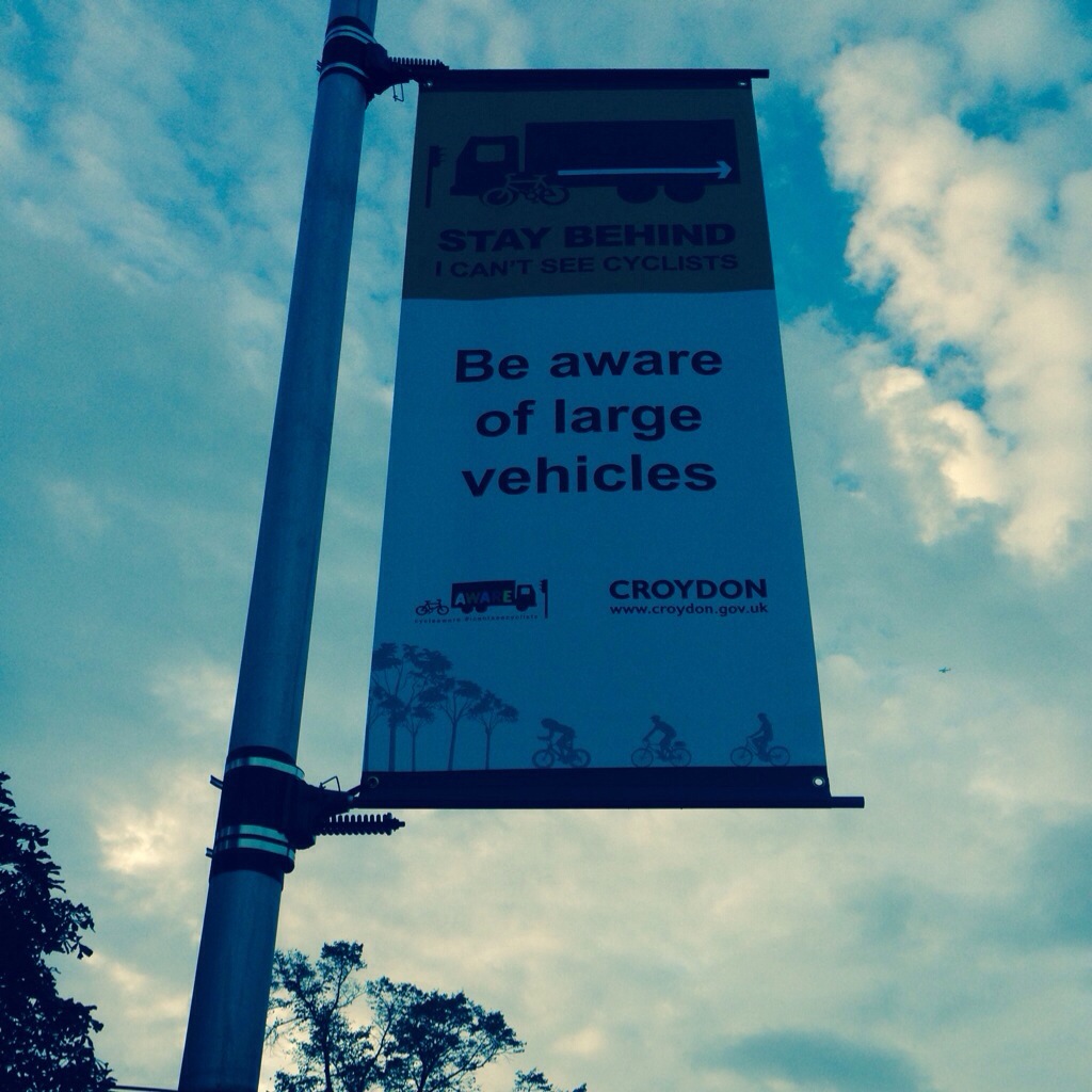 ‘Be aware of large vehicles,’ (reminds the Croydon Council bureaucrat).