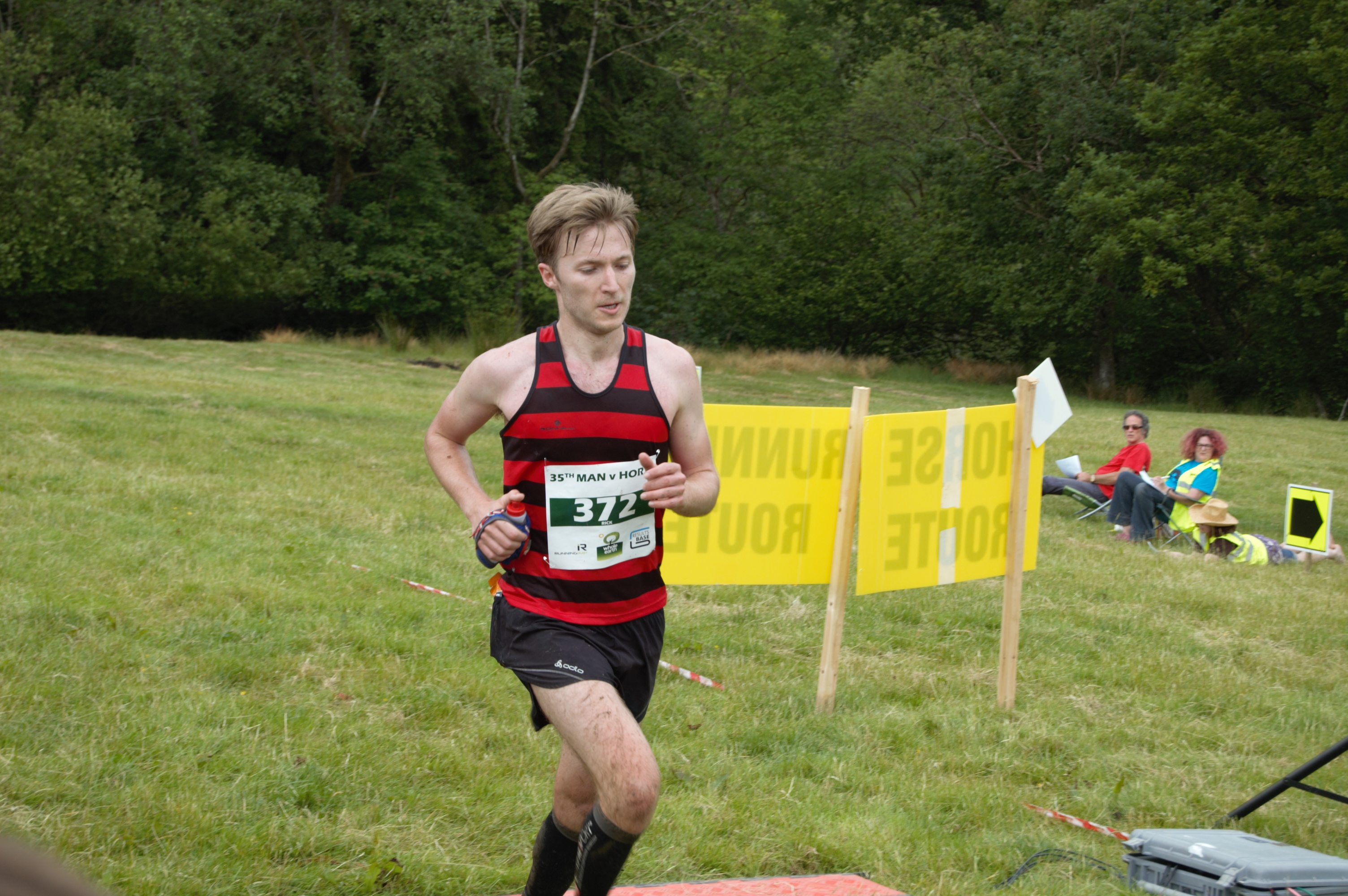 For miles I saw no other competitor. I had left the Blackheath vest behind. No horses came by. No other runners. I ran as hard as I could, revelling in the blissful tunnel vision that comes with racing. My race burst into life again at 16 miles. Looking up, at the top of a winding track, were two runners, the first I’d seen in an hour. One wore blue; one wore black and white. Behind me were two horses, the same two that had already passed and had presumably been held up by vets. The horses would catch me long before I would catch the runners. We congregated on a steep section of rough forestry track. I passed the runner in the black and white Pontypridd vest first; he had started to walk. Seconds later, I drifted by the runner in blue. I glanced to my left. It was Huw Lobb. The last time Lobb and I had been in the same race, unbeknown to both of us, he had beaten me by five minutes in a 10k road race.