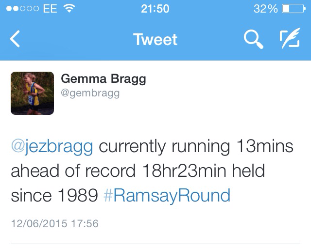 Gemma confirms it for the world: ‘@jezbragg does it! 18hr12min, 11min record #RamsayRound a record that has been held since 1989, not anymore!’