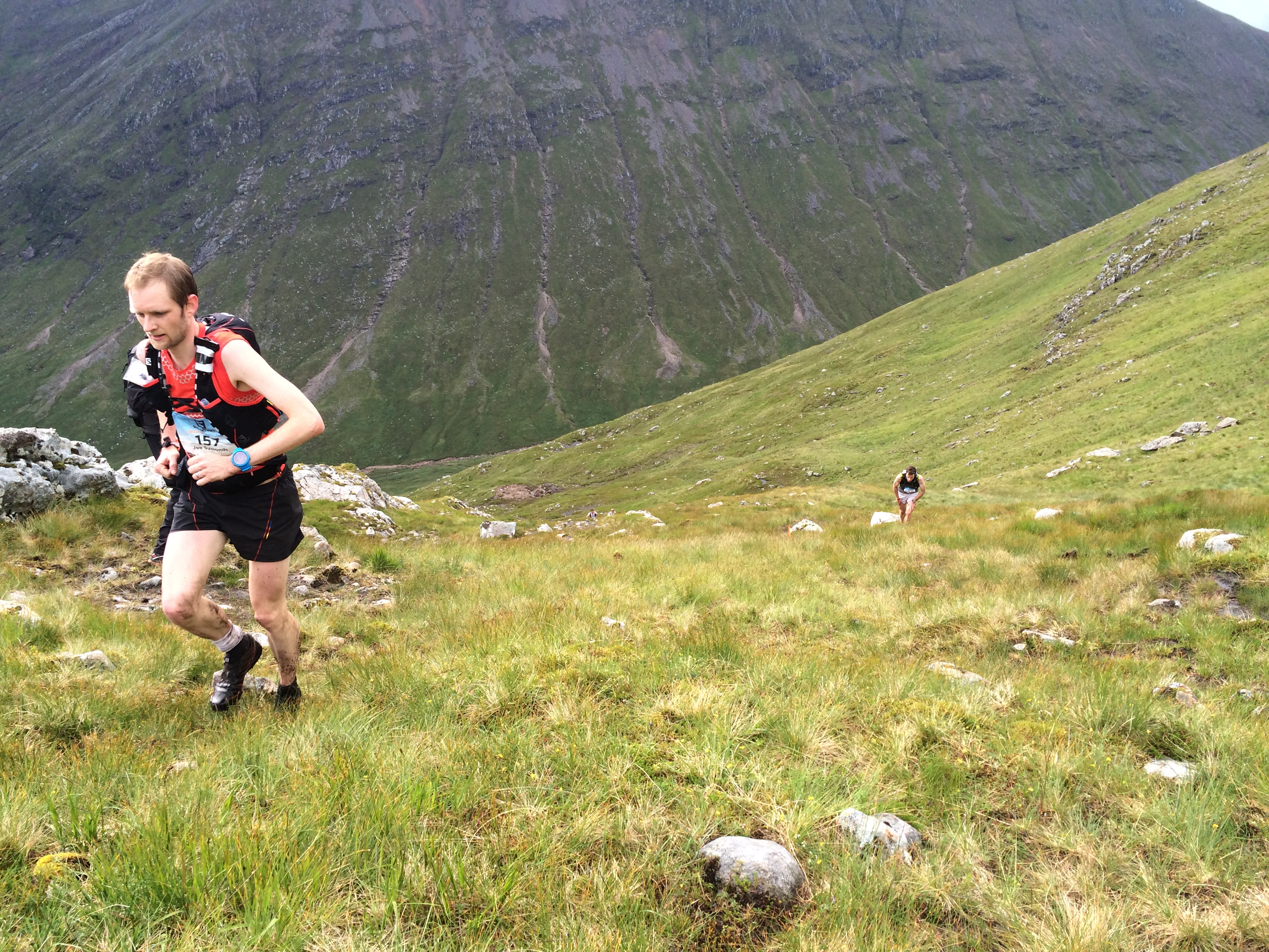 I had climbed to the col on Buachaille Etive Beag to watch the procession of leading runners. Across the glen was Buachaille Etive Mor, a 1021-metre colossus, which runners had gained via the Grade III scrambling route of Curved Ridge. I strained my eyes until I eventually spotted a minuscule stick figure on the distant ridge: a runner moving steadily across boulders. Soon there were dozens of them. The stick men and women were dwarfed by the immensity of the world they had entered. It was one of the most beautiful things I had ever seen.