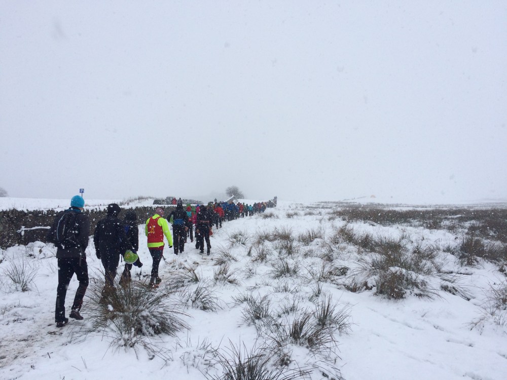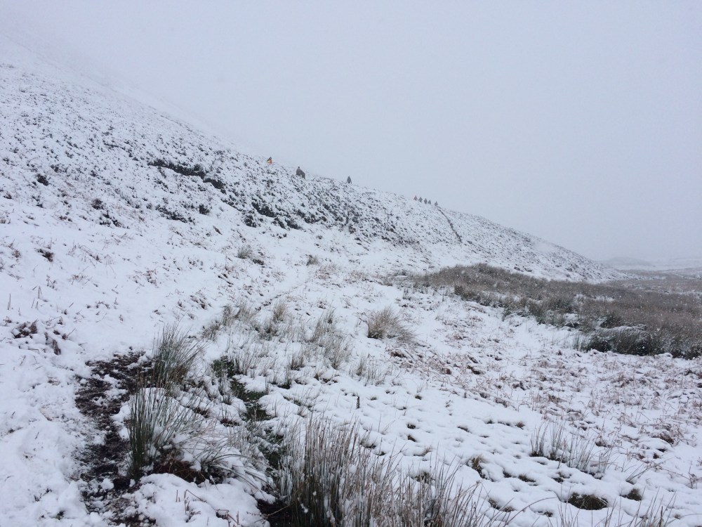 To this white world we went, dumped by coaches in a field next to the A702. We trudged in a sullen line to the start, pathetically trying to avoid premature wet feet by hurdling the saturated ground. We arrived to the apocalypse: amid a sodden, snowy wasteland stood a cluster of tents containing half-starved shivering people, clasping hot liquid and looking across to a hazy white chaos encasing the hills, all wondering the same thing: what the hell are we doing here?