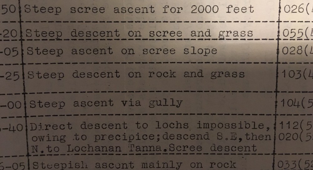 Day 12: A copy of the original route description given to runners in the first Bens of Jura Fell Race. There is a common theme: ‘Steep.’