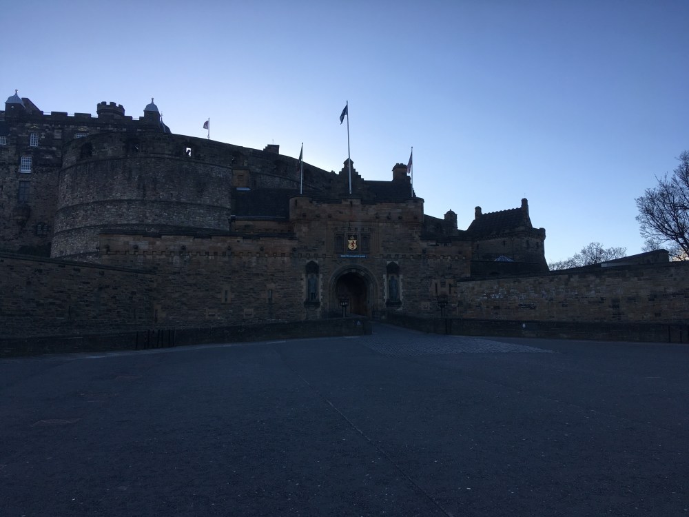 In truth, we had scarcely begun. The miles became a blur: a trudge along the Union Canal; a string of summits – a juxtaposition of the glorious and the innocuous; waves of pavement; a slow-moving picnic of salted cashew nuts, prawn cocktail crisps, fruit pastilles, bananas and Fanta; a long, steep climb to gain the marvellous Arthur’s Seat. Now down to three, we edged into Leith, past Holyrood, through the tourists on the Royal Mile, popping out on the grand castle esplanade.